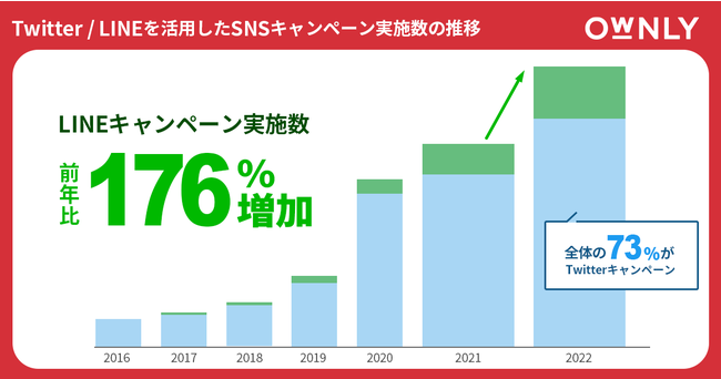 2022年にOWNLYを活用したSNSキャンペーンの内、73%がTwitterキャンペーン