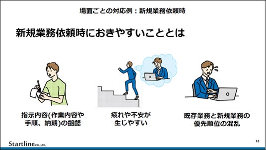 繁忙期や体制変更など、就業時に誰もが遭遇する場面において、障害者雇用で起きやすいことをピックアップ。それぞれの場面における一般的な例から具体的事例、状況・要因の整理、問題の原因の可能性の検討、対応・合理的配慮決定と対応のステップを追って解説します。