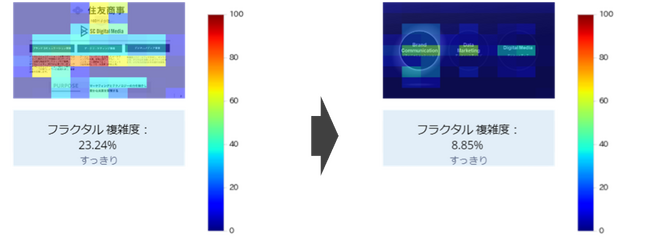 ▼画像の複雑度を下げる情報整理やデザイン処理を行うことで、メッセージが伝わりやすく