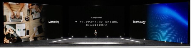 ▼ライト、ステージ、スライド全ての要素を一貫して演出することで空間の一体感を担保