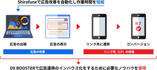 本プログラムでは、「DX BOOSTER」の広告運用ノウハウと「Shirofune」の自動化機能を組み合わせ、広告運用の最適化を早期に実現できる環境を提供します。