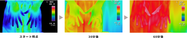 遠赤外線は、一度あたたまると冷めにくいのも特長。ヒーターを停止してもすぐに体が冷えず、あたたかさが長続きします。