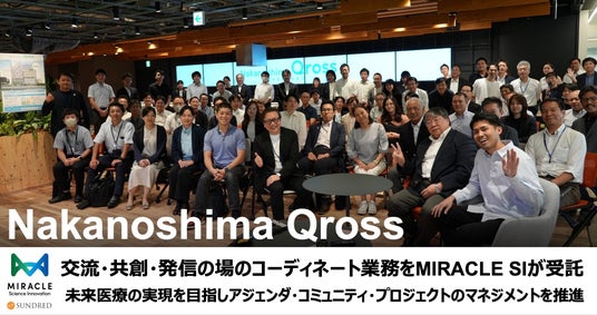 100個の新産業の共創を目指す「新産業のエコシステムビルダー」SUNDRED株式会社(所在地:東京都渋谷区、代表取締役:留目 真伸、以下SUNDRED)の子会社であるMIRACLE SCIENCE INNOVATION株式会社(所在地:大阪市北区、代表取締役:宮川 潤、以下MIRACLE SI)は、2024年8月より未来医療国際拠点「Nakanoshima Qross」(所在地:大阪市北区、運営主体:一般財団法人未来医療推進機構、以下 未来医療推進機構)における交流・共創・発信の場「Qrossover Lounge夢」を活用したプログラム全体のコーディネートとコミュニティ形成に関わる業務を受託したことをご報告します。また、第1回目のイベントとして2024年8月7日にシンポジウム『「Nakanoshima Qross」が開く未来医療の扉~日本初イノベーションエコシステムへの挑戦~』を開催しました。