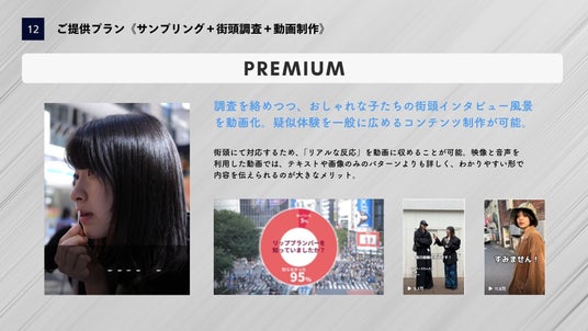 さらに、ファッション感度の高い人への街頭インタビューを動画化し、疑似体験を一般に広めるコンテンツ制作が可能です。