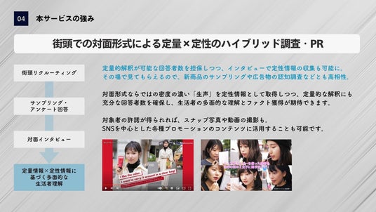 ストリートキャッチによるスナップモデルを利用した調査・PRが可能に