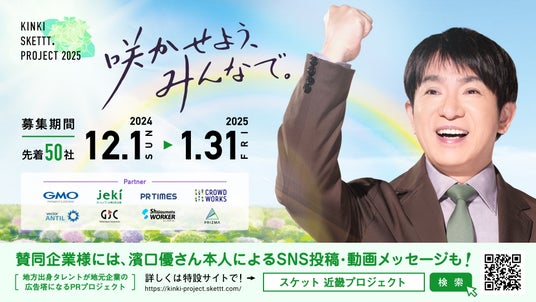 株式会社Wunderbar(本社:東京都渋谷区、代表取締役:長尾慶人)が運営する「KINKI SKETTT. PROJECT(近畿スケットプロジェクト)」は、本日2024年12月1日(日)より、本プロジェクトの賛同企業の募集を開始いたしました。大阪府出身のタレント・濱口優さんがPRでお困りの地元企業を支援し、近畿地方を盛り上げます。