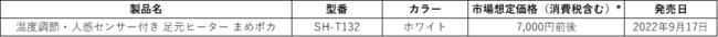 製品名:温度調節・人感センサー付き 足元ヒーター まめポカ