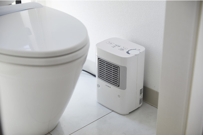 本製品は、脱衣所やトイレ、キッチンやデスク下の足元などの狭いスペースに設置しやすいコンパクトサイズ。置き場を選ばずに設置*1することができます。本体は軽量かつ取っ手付きで、持ち運びも簡単です。