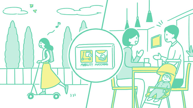 子どもの出産を機に引っ越してきて、この街のことをもっと知りたいCさん・Dさん夫婦。そんな夫婦に、商業施設はテナントだけでなく、地域スポットへのモビリティ手配やテナントと公園を連携させた体験、さらには地域の人とのマッチングや交流の機会提供など、地域リソースも活用してサービスを提供。商業施設が地域連携の拠点となることで、Cさん・Dさん夫婦の新しい街での暮らしが豊かなものになった。