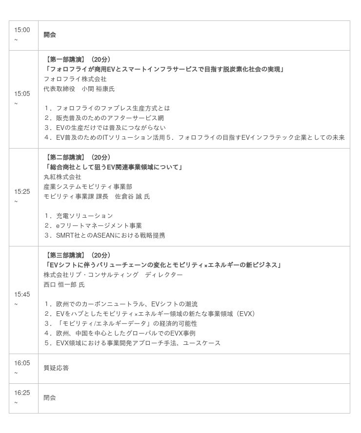 今、最も注目を集める商用EVのファブレスメーカーであるフォロフライと、フォロフライの正規代理店を担っている丸紅の二社様に登壇いただき、