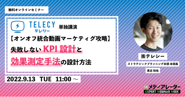 2022年9月13日(火) 11時から、弊社ストラテジックプランニング本部 本部長の貴志が登壇し、『【オンオフ統合動画マーケティグ攻略】失敗しないKPI設計と効果測定手法の設計方法』をテーマに講演いたします。
