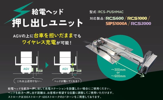 今までワイヤレス充電が難しかった、もぐり込み式AGVのワイヤレス充電も押し出しユニットで解決できる! 実演デモ展示!!