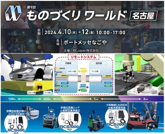 「製造」から「搬送」までと題し、製造工程での回転・着脱部等での電源/信号伝送用ワイヤレス給電システムの新商品展示や、AGV/AMR等へのバッテリーワイヤレス充電システムの新商品周辺装置関連の展示を致します。