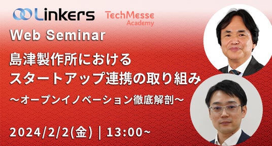 リンカーズ株式会社(本社:東京都文京区、代表取締役社長:前田 佳宏)は、ものづくり企業のオープンイノベーションを推進する技術者や研究者を対象に、株式会社島津製作所のオープンイノベーションに向けた取り組みを紹介する Web セミナーを、2 月 2 日(金) 13:00 より開催いたします。