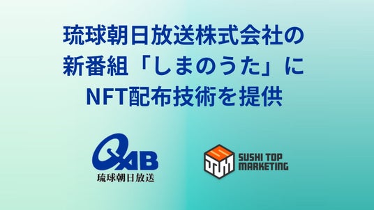 SUSHI TOP MARKETING株式会社(本社:東京都千代田区、代表取締役 CEO:徳永 大輔、以下 「当社」)は、琉球朝日放送株式会社(本社:沖縄県那覇市、代表取締役社長:上原直樹、以下 「琉球朝日放送」)の新番組「しまのうた」に、NFT配布技術を提供しています。当取り組みは琉球朝日放送が文化庁から委託を受けて実施する「NFT技術を活用した地方文化振興の新しい事業モデル作り」の一環として行うものです。