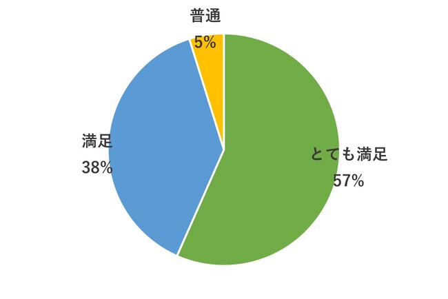 オフィスデザインや仕上がりの満足度について、「とても満足」「満足」が合計95%になりました。