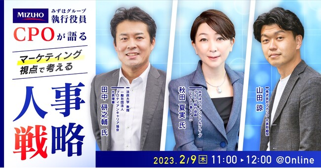 2023年2月9日(木)11:00 - 12:00 @オンライン【みずほフィナンシャルグループ グループ執行役員 秋田氏 × 法政大学キャリアデザイン学部教授 田中氏が登壇】