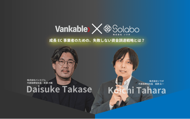 株式会社SoLabo(本社:東京都千代田区、代表取締役:田原広一、以下、SoLabo)は、EC事業者向けの資金調達をテーマとして、株式会社バンカブル(本社:東京都千代田区、代表取締役社長:高瀬 大輔、以下、バンカブル)と共同で無料セミナーを開催いたします。申し込みURL :https://so-labo.co.jp/workshop/20221215/