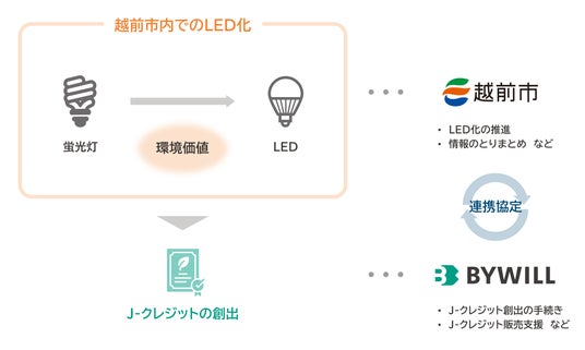 また、バイウィルと自治体が、LED化によるJ-クレジット創出を前提として協定を締結するのは、越前市が全国初です。