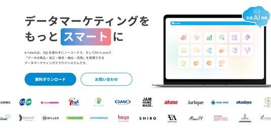 「b→dash」は、SQLを使わずにノーコードで、そしてAll in oneで