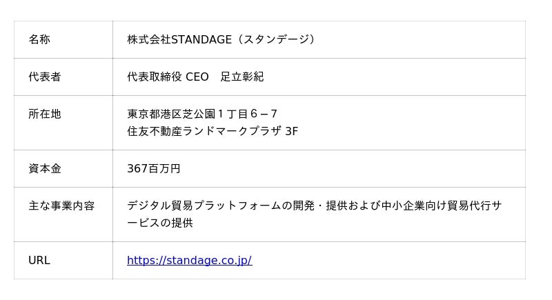 株式会社STANDAGE(読み:スタンデージ、本社:東京都港区、代表取締役:足立 彰紀、以下「STANDAGE」)と、株式会社船井総研ホールディングス(本社:東京都中央区、代表取締役社長 グループCEO:中谷 貴之)は2026年2月に資本提携を実施し、株式会社船井総合研究所(本社:東京都中央区、代表取締役社長:真貝 大介、以下「船井総合研究所」)とともに、船井総合研究所の経営コンサルティングと、STANDAGEが提供するデジタル貿易プラットフォーム「おまかせ貿易」の知見を融合し、中堅・中小企業の輸出・海外展開支援を加速させることをお知らせします。