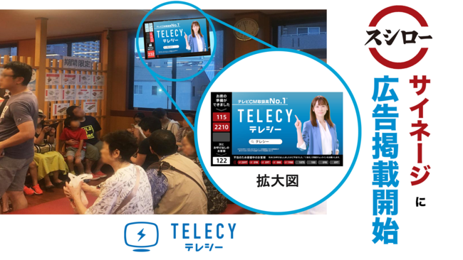 https://telecy.tv/ )を運営する株式会社テレシー(東京都渋谷区、代表取締役CEO:土井 健)は、2022年9月16日より、株式会社あきんどスシロー(大阪府吹田市、代表取締役社長:新居 耕平)が展開するスシローの待合スペース内デジタルサイネージにて、自社サービスの広告を掲載開始いたしました。