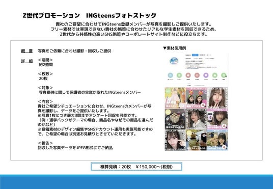 株式会社アイ・エヌ・ジーZ世代に刺さるSNSやWEBサイトを制作したい企業様向け「オーダー式写真提供」メニュー