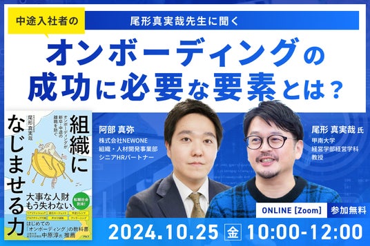 https://new-one.co.jp/ 以下、NEWONE)は、2024年3月より弊社の顧問に就任頂きました甲南大学経営学部経営学科の尾形真実哉教授をお招きし、「中途入社者のオンボーディングの成功に必要な要素とは」をテーマに無料オンラインセミナーを開催いたします。