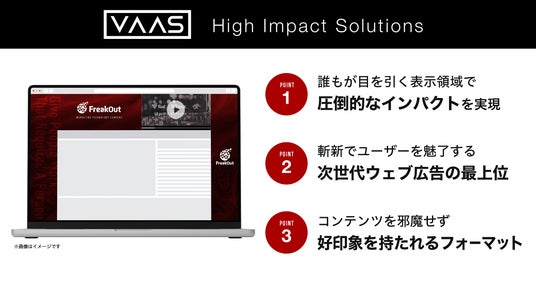 VAASとはVAASは、日本市場においていち早くHigh Impact 広告ソリューション(*) の導入を開始した企業の一つです。5年以上にわたる経験をもとに、多くの広告主、代理店、媒体社へのHigh Impact 広告ソリューションの導入を成功へと導いてまいりました。