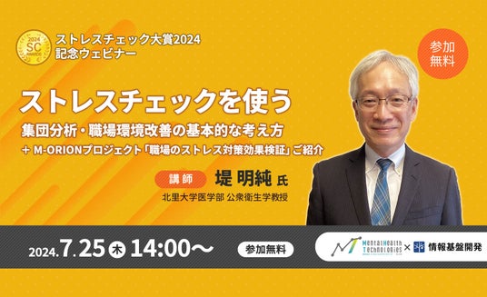 北里大学医学部教授・堤明純氏が登壇する「ストレスチェック大賞2024」記念ウェビナー第3弾のライブ配信を行います。参加無料。
