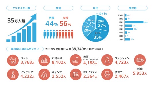 2024年5月に商品カテゴリ登録機能をリリースし、38,349名*のクリエイターが既に登録済み。各カテゴリごとに2,300名~8,100名ほどが取得可能です。今後、より多くのクリエイターに登録を推奨していきます。*2024年10月15日時点