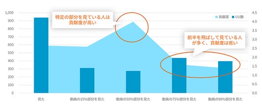 また、「動画内で特定の部分を視聴していると貢献度が高い」こともわかりました。