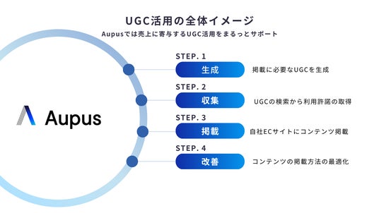 また、UGCをECサイトに掲載することは、売上向上が期待できる非常に有効な手段の一つです。しかし、SNS上にUGCが蓄積されている企業や、定期的にインフルエンサーマーケティングを実施している企業においても、これらのコンテンツを十分に活用できていないケースが多く見受けられます。Aupusは、こうした課題を解決し、UGCを効率的に管理・活用して売上向上に寄与することを目的としております。