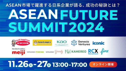 SNS起点のプロモーション、ASEAN進出支援マーケティングを行う株式会社FinTは(本社:東京都渋谷区、代表取締役:大槻祐依)は、11/26(火)・11/27(水)13:00~17:00の2日間で大型オンラインカンファレンス「ASEAN FUTURE SUMMIT 2024」を開催いたします。本カンファレンスでは、ASEAN市場で躍進する日系企業が進出のリアルを語り、今後さらなる日系企業がASEAN市場にチャレンジする契機となることを目指します。