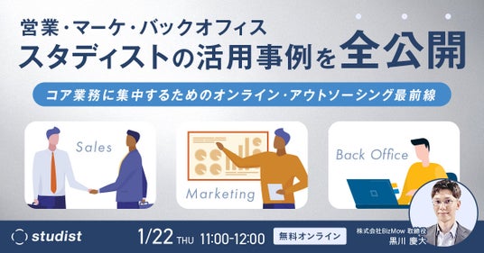 労働人口が4割減少すると予測される未来において、企業は「10人でやっていた仕事を6人で回す」時代に直面しています。多くの現場ではコア業務への集中を願いながらも、商談準備やデータ加工などのオペレーション業務に忙殺されているのが現状です。本セミナーでは、スタディストがいかにしてオンライン・アウトソーシングを活用し、社員をコア業務へシフトさせてきたか、その具体的な事例とノウハウを公開します。