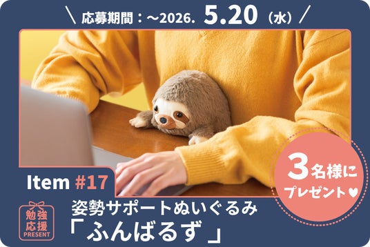 見た目は愛らしいぬいぐるみ&中身は実力派の姿勢サポートぬいぐるみ「ふんばるず(Regular/ナマケモノ)」を3名様にプレゼント!