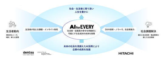 株式会社電通(以下、電通)、株式会社電通デジタル(以下、電通デジタル)、株式会社日立製作所(以下、日立)は、このたび、生成AI領域で戦略的に協業していくことを合意し、生活者に寄り添った革新的な生成AIサービスの検討・提供を共同で行うプロジェクト「AI for EVERY」を立ち上げました。