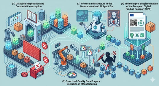 「デジタルプロダクトパスポート(DPP)」は、製品の環境負荷や素材トレーサビリティを電子的に証明する枠組みですが、記録されるデータ自体の真正性をどう担保するかについての技術的規定は存在しません。本特許は、この技術的空白を埋める具体的手段を提供いたします。