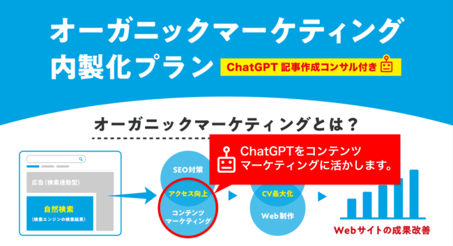 Webマーケティングとクラウドセールステックを展開する株式会社ジオコード(本社:東京都新宿区、代表取締役:原口大輔、東証スタンダード:7357)は、Google、Yahoo!など自然検索からのアクセス数を増加させ、最終的にWebサイト上の成果改善に結びつける同社が提供するサービス「オーガニックマーケティング内製化プラン」に、人工知能(AI)チャットツールを活用した新サービス「ChatGPT記事作成コンサルティング」を追加しました。