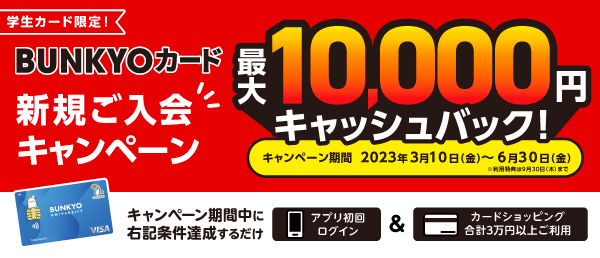 BUNKYOカードは、学生生活を豊かにするとってもおトクなクレジットカードになります。
