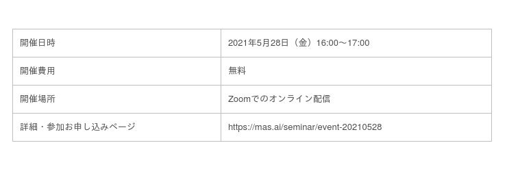 詳細・参加お申し込みページ:https://mas.ai/seminar/event-20210528