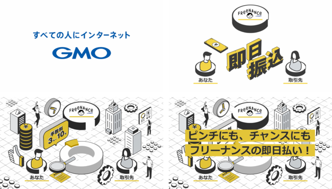 本作はフリーランス・個人事業主を支えるお金と保険のサービス「FREENANCE byGMO」の紹介と、そのサービスの一つである請求書(売掛債権)をすぐに現金化できる「FREENANCE即日払い」の紹介として制作しました。