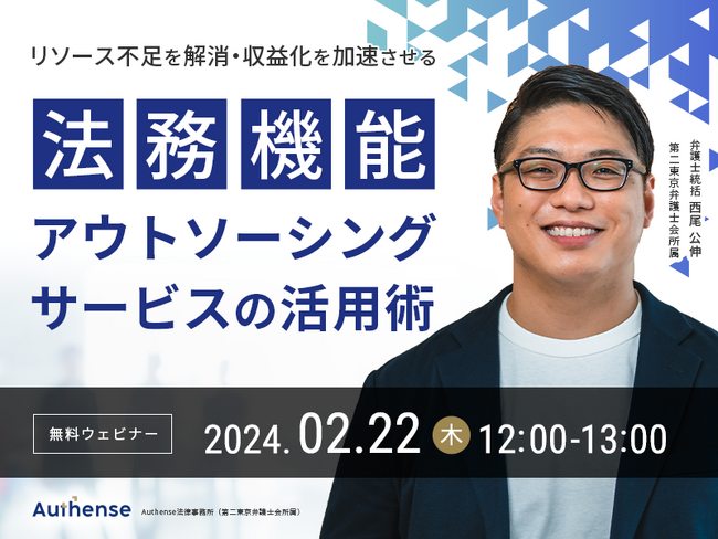 【無料セミナー開催2024.02.22】リソース不足を解消・収益化を加速させる 法務機能アウトソーシングサービスの活用術 | Authense法律事務所