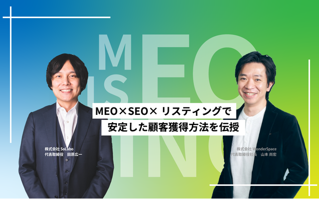 株式会社SoLabo(本社:東京都千代田区、代表取締役:田原広一、以下SoLabo)は、株式会社WonderSpace(本社:東京都港区、代表取締役:山本尚宏、以下WonderSpace)と合同で「SEO×MEO×リスティング」をテーマとしたオンラインセミナーを2023年1月18日(水)に開催いたします。(申し込み先:https://so-labo.co.jp/workshop/20230118/ )