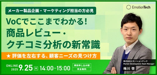 本セミナーでは、声の量に惑わされることなく、顧客が本当に重視している要因──自社製品の本当の”強み”と”弱み”を、VoCデータから導き出す手法を、事例を交えて解説します。