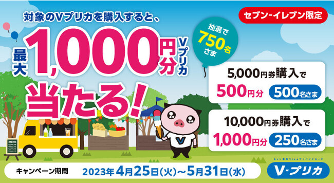 セブン‐イレブン店内に設置されているマルチコピー機より対象のVプリカを購入すると、抽選で750名さまに最大1,000円分のVプリカが当たる!