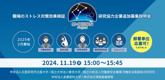M-ORIONプロジェクト「職場のメンタルヘルス対策効果検証」研究に参加協力いただける法人企業・団体の追加募集に関する説明会をオンライン開催致します。