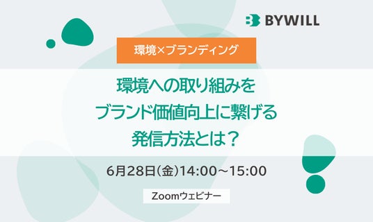 株式会社バイウィル前回100社を超えるお申込みがあった人気セミナーを追加開催!230社のブランディングを支援してきた実績を基に、企業の環境への取り組みを「ブランド価値」に繋げていく具体的な方法論をお伝えします!