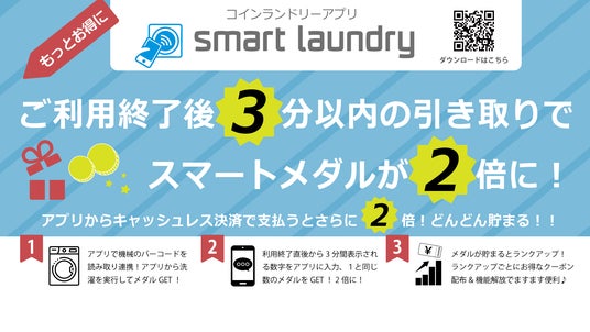 「smart laundry」アプリのメダルは洗濯利用&早期引取で通常通り貯まるのでアプリからのPayPay支払いだとWでオトク!