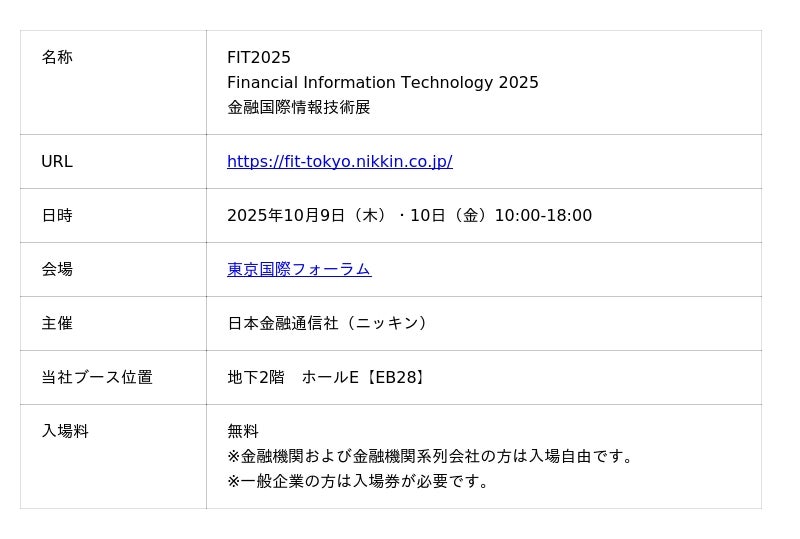デジタルで未来最適をリードするスパイラル株式会社(東京都港区、代表取締役グループCEO 佐谷 宣昭)は、2025年10月9日(木)・10日(金)の2日間、東京国際フォーラムにて開催される「FIT2025」に出展いたします。